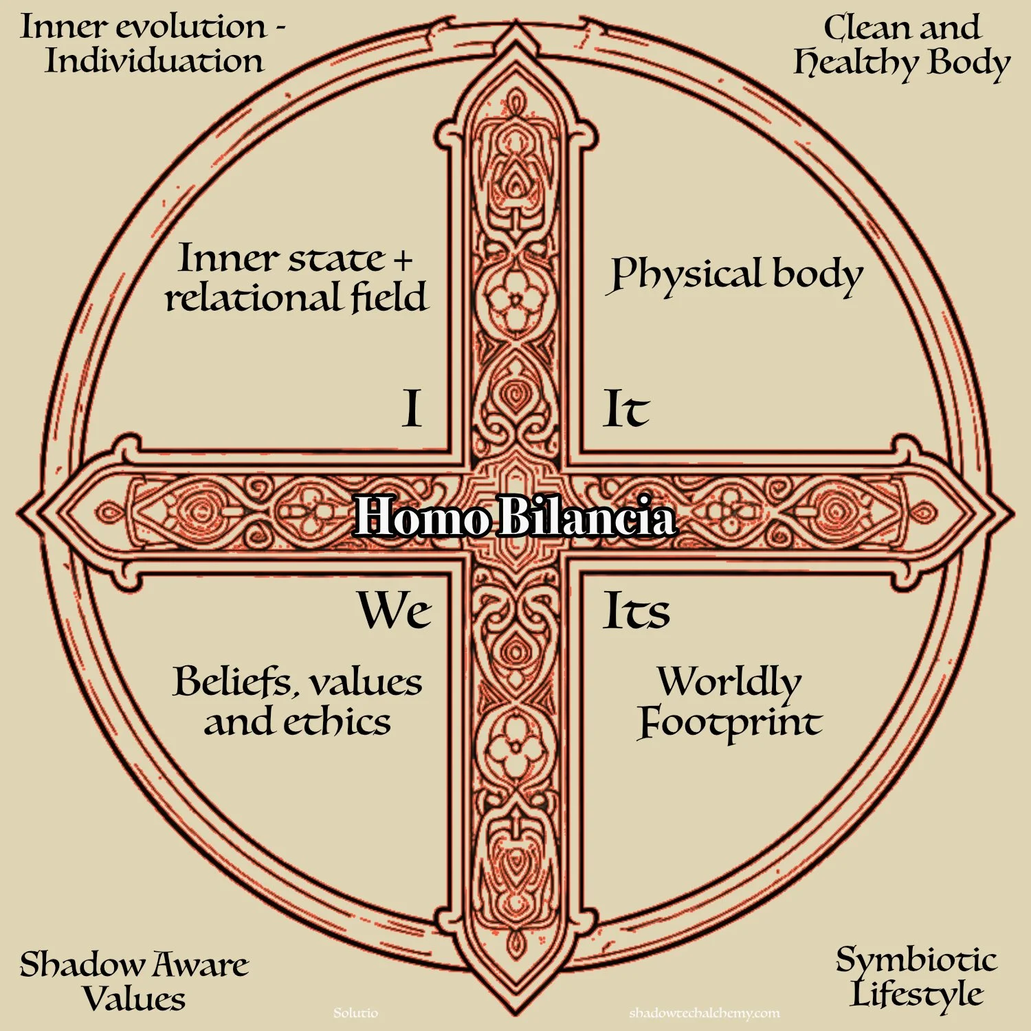 Solutio is our effort to seed the movement, to share theory and practice and to encourage each other to act with duty and devotion. Our work is Integral in that it approaches our greatest challenges holistically, across four quadrants of reality - psyche, body, culture and civilization. Our work is also earthy, often dark and heavy because many of our most foundational problems lie within the shadow of the human psyche. We are shadow work practitioners and theorists.